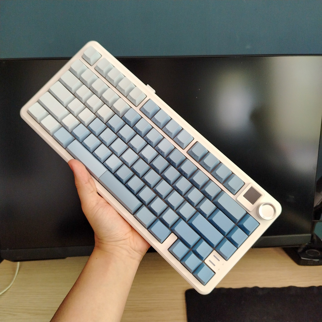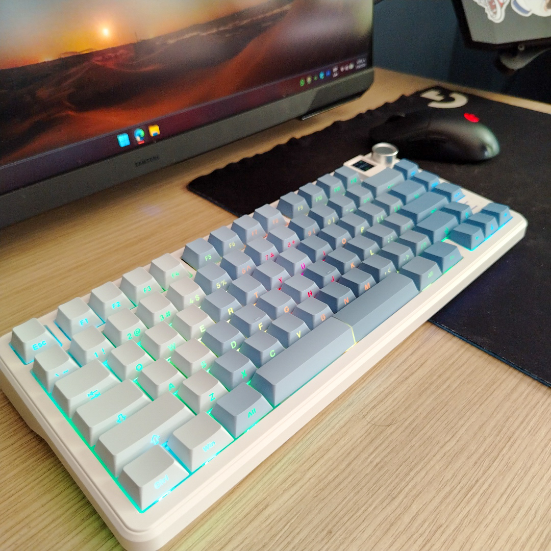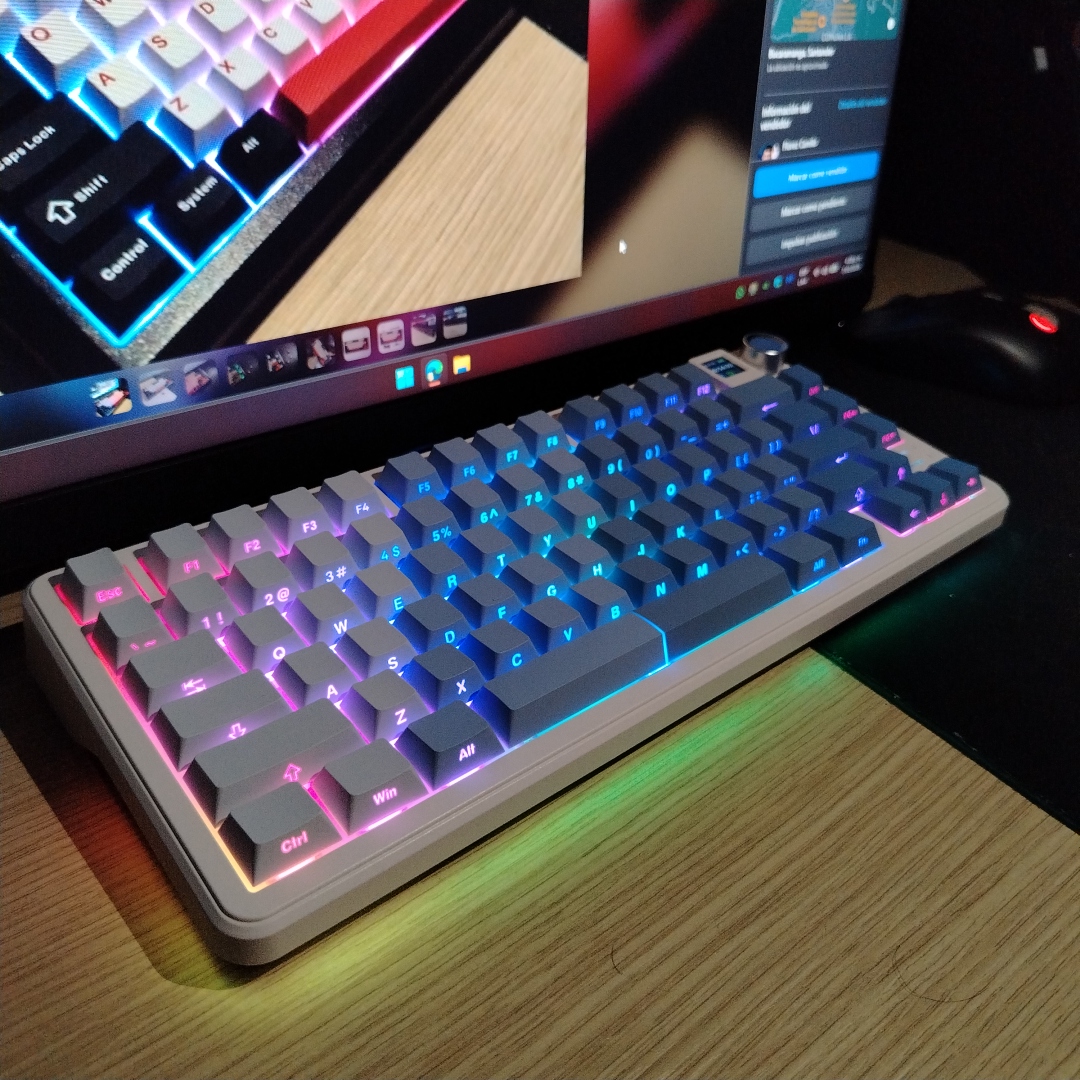 Es perfecto para quienes trabajan y juegan. Su diseño en Blanco y Azul con cuerpo de aluminio se ve elegante y profesional, no es el típico teclado gamer recargado.
